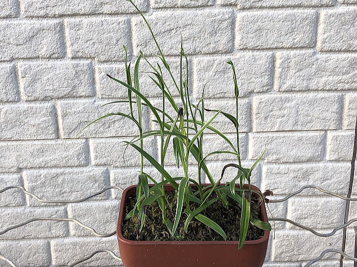 植付は1月22日 鉢の大きさは約、 タテ12cm×ヨコ18cm、 深さは6cmの角型の浅鉢です。 |