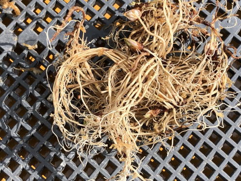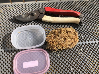 | 5つの芽を上下から水苔ではさむようにして、小さいタッパーに入れて送られてきました。(上部画像) | ||