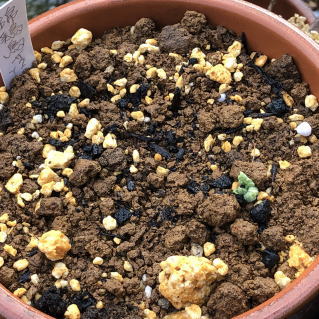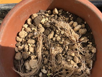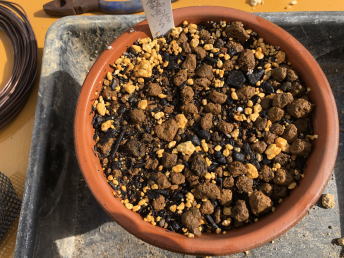 | 用土は、腐葉土、赤玉土、鹿沼土を適当に混合させた物を使用。5号駄温鉢に3芽と2芽に分けて植える。 | ||