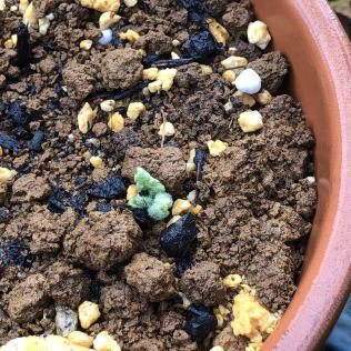 2月下旬。芽が地上部へ出てきた。 (植え付けから約3週間) |