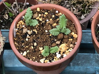 購入したサクラソウの芽です。 上部画像の拡大 2月上旬 |