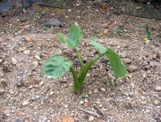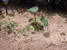昨年は大型ポットで栽培した里芋。 今年は露地栽培に挑戦です。 4月11日に植え付けました。 |