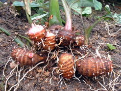 6月12日以降収穫するまでの画像がありません。 里芋は順調に生育していきました。途中1株種芋が腐りダメになってしましました。 いきなり収穫の画像です。 |