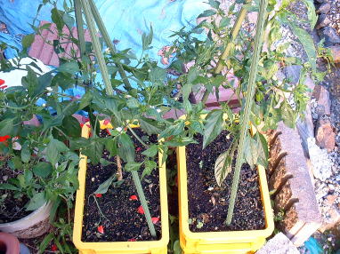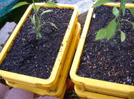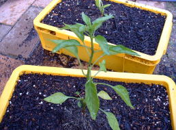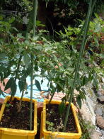 左側写真は7月1日の様子です。収穫ができるようになりました。根もずいぶんと伸び出してきました。梅雨の時期ということもありますが、ほとんど水やりはしていません。普通、この程度の土の量では、乾燥が早く水やりも大変ですが、現在水やり作業はかなり軽減できています。 |