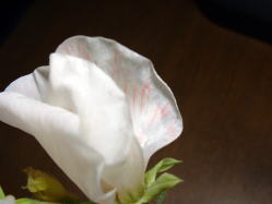 上段写真の花びらの様子です。 赤い色素に入れた方も、花びらに赤い線が入っているのがわかるでしょうか。もう少し長く入れてみようと思います。 |