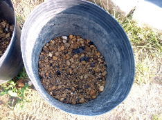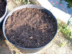 | 5月14日苗の植え付けの準備。家にあった土と購入した堆肥を混合し使用した。 |