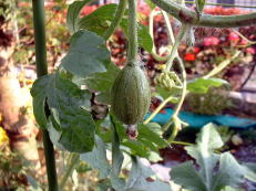 6月21日の様子。交配後3日後。雄花と雌花がタイミング良く咲かないので苦労しました。この時交配できたのは1つだけで、もう一つの方は無駄になるかもしれないと思い始めていました。 |