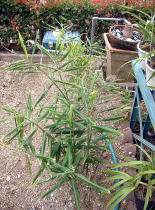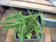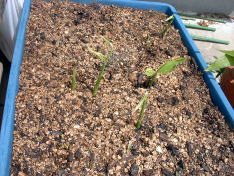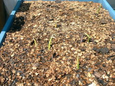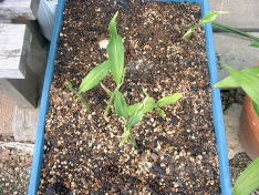 4月にホームセンターで種ショウガを購入しました。植え付け予定の場所には’たまねぎ’を栽培中ですぐ植え付けることはできませんでした。 そこで調べてみると、ショウガは芽が出るまでに日数がかかるので、芽出しを別にすることが可能であることを知りました。 育苗箱に4月下旬に植え込みました。 左写真は5月22日の様子。芽が出はじめました。 |