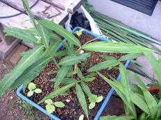 ショウガの生育の様子です。 6月の中旬には、畑に定植したかったけれど、梅雨の大雨で休日はいつも雨ばかりでした。 |