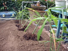| 7月11日、雨の合間をぬってショウガを定植しました。 | ||