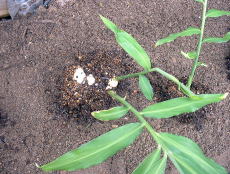 8月8日に土寄せをしました。 追肥をおこない土を株元へ寄せました。 |
