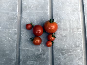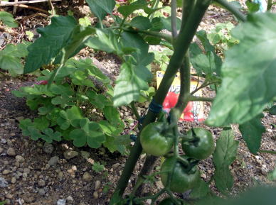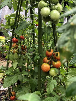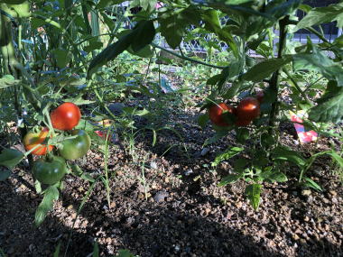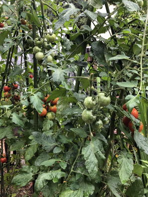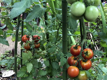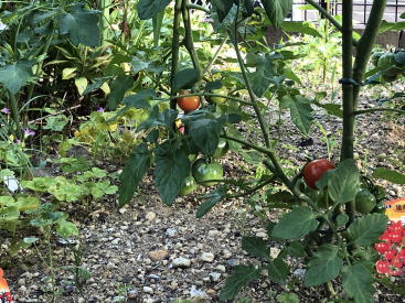 | 7月上旬のトマトです。ミニトマトと中玉トマトの4本ですが 、家庭で利用するには十分な収穫です。 |