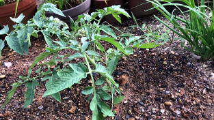 | 5月28日定植 定植する場所が狭かったので、今回は2株だけ定植 |