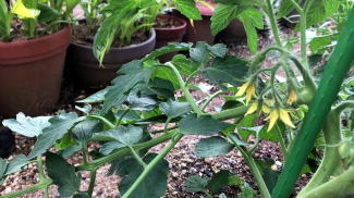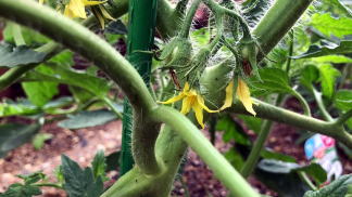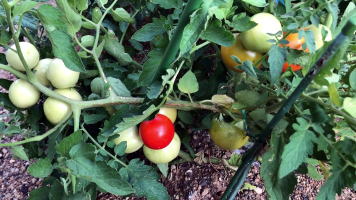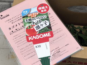 | イオンとカゴメのコラボ懸賞に応募。商品としてカゴメのトマトの苗が送らてきた。そんなトマトを栽培した。 凛々子の特徴 〇カゴメのジュース用の品種〇支柱立ての必要はなし→主茎と側枝(わき芽)を地を這わせて栽培する 〇芽かき不要→主茎は第4花房ほどで芯が止まる 〇果皮が硬くなる性質がある→加熱調理向き |