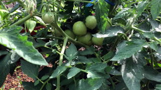 凛々子の栽培について、カゴメさんが言うように、ほとんど手間を取りませんでした。 わき芽取りはしませんでしたが、実が地面に接触すると傷んだり、害虫の被害が心配だったので、支柱は立てることにしました。 わき芽取りや誘引の必要がないと、作業的にはずいぶんと楽になります。 |