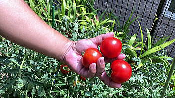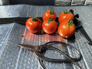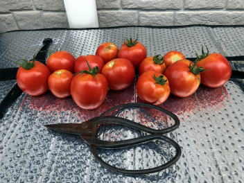 | 7月30日 トマト2株ですが、家庭で食べるには十分な収獲です | ||