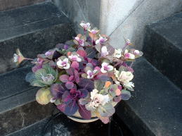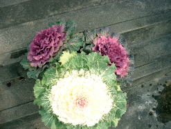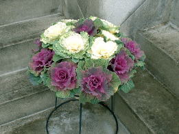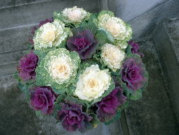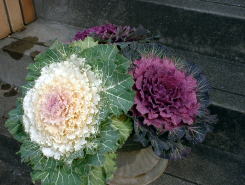 小さめのハボタンを中心に植え付けました。中には切り花用(?)のハボタンも植え込み可愛らしく仕上げてみました。